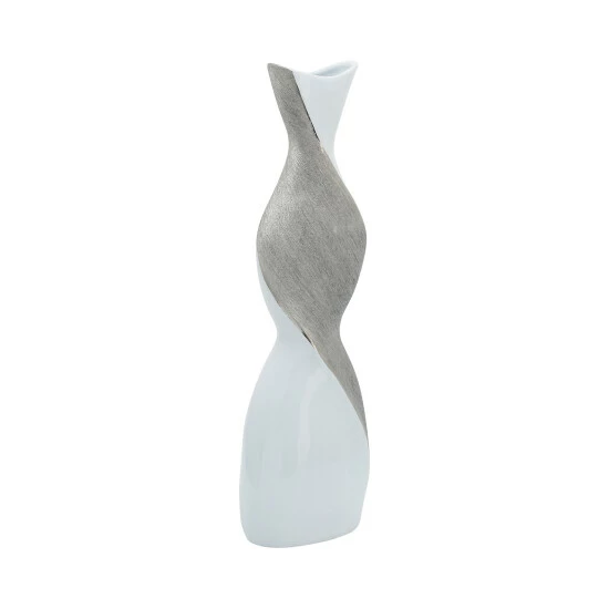 Ceramic 20″ Twisted Vase in White/Silver will make a great addition to your home decor. This vase can be used alone or with your favorite flowers. The beautiful white and silver combo on this vase give it a very glam look.Sagebrook Home has been formed from a love of design, a commitment to service and a dedication to quality. They create and import fashion forward items in the most popular design styles. Backed with years of experience in the textile field, They are now providing a complete Home decor story. the combination of wall decor, furniture, lighting and Home accessories are all coordinated with textiles to provide a complete Home look. Sagebrook Home is committed to providing the best Home dรฉcor and accent pieces at value prices. Item Dimensions:6x3x20/Color: Silver Materials: Ceramic Category: Vases And Jars, Vases Product Theme / Style / Trend: Glam Country Of Manfacture: Cn
