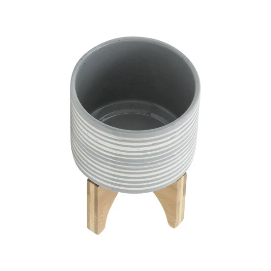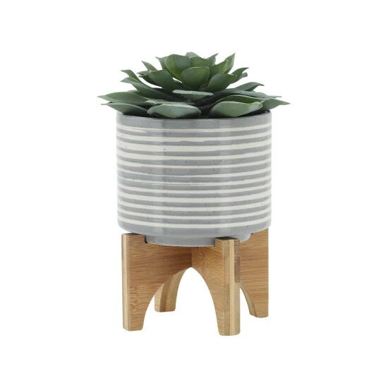 A brushed pattern with texture describes this planter. Looks great with a plant or without one. The natural wood base gives a natural feel. Sagebrook Home has been formed from a love of design, a commitment to service and a dedication to quality. They create and import fashion forward items in the most popular design styles. Backed with years of experience in the textile field, They are now providing a complete Home decor story. the combination of wall decor, furniture, lighting and Home accessories are all coordinated with textiles to provide a complete Home look. Sagebrook Home is committed to providing the best Home dรฉcor and accent pieces at value prices. Item Dimensions:5.25×5.25×7/Planter 1 Only Dims:5x5x4.25/Color: Gray Materials: Ceramic, Wood, Rubber Wood Category: Outdoor Decor, Planters Product Theme/Style/Trend: Contemporary Country Of Manfacture: Cn