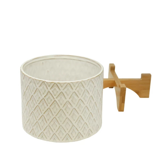 Beautiful ceramic round planters sitting on a wood stand with gorgeous and colorful designs on the exterior. These stunning planters will look great in your living room or front entry way. Perfect addition to your decor.Sagebrook Home has been formed from a love of design, a commitment to service and a dedication to quality. They create and import fashion forward items in the most popular design styles. Backed with years of experience in the textile field, They are now providing a complete Home decor story. the combination of wall decor, furniture, lighting and Home accessories are all coordinated with textiles to provide a complete Home look. Sagebrook Home is committed to providing the best Home dΓ©cor and accent pieces at value prices. Item Dimensions:8.5×8.5×9/Planter 1 Only Dims:8x8x7/Color: Ivory/beige Materials: Ceramic, Wood, Bamboo Wood Category: Outdoor Decor, Planters Product Theme/Style/Trend: Contemporary Country Of Manfacture: Cn