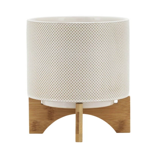 There is never a wrong place to decor your home with a polka dot planter pot. Beautiful ceramic round planter sitting on a wood stand with a tan polka dot design on the exterior . This stunning planter will look great anywhere you place it.Sagebrook Home has been formed from a love of design, a commitment to service and a dedication to quality. They create and import fashion forward items in the most popular design styles. Backed with years of experience in the textile field, They are now providing a complete Home decor story. the combination of wall decor, furniture, lighting and Home accessories are all coordinated with textiles to provide a complete Home look. Sagebrook Home is committed to providing the best Home dรฉcor and accent pieces at value prices. Item Dimensions:8x8x9/Planter 1 Only Dims:8x8x7/Color: White Materials: Ceramic, Bamboo Wood Category: Outdoor Decor, Planters Product Theme/Style/Trend: Contemporary Country Of Manfacture: Cn