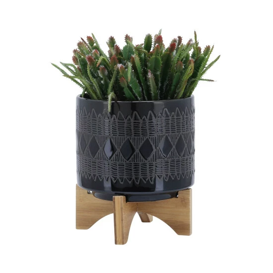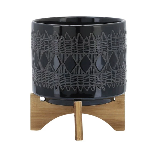 This Planters will be the perfect addition to your home decor and complement any of your existing furniture. Created from the highest quality these Planters home accent will be a great centerpiece for your home! Sagebrook Home has been formed from a love of design, a commitment to service and a dedication to quality. They create and import fashion forward items in the most popular design styles. Backed with years of experience in the textile field, They are now providing a complete Home decor story. the combination of wall decor, furniture, lighting and Home accessories are all coordinated with textiles to provide a complete Home look. Sagebrook Home is committed to providing the best Home decor and accent pieces at value prices. Item Dimensions:10x10x12/Color: Black Materials: Ceramic, Bamboo Wood Category: Outdoor Decor, Planters Product Theme/Style/Trend: Contemporary Country Of Manfacture: Cn
