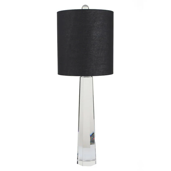 A crystal table lamp that has a obelisk shape lamp body. The base is crystal and the shade is polyester. It has a beautiful design that will complement any room.Sagebrook Home has been formed from a love of design, a commitment to service and a dedication to quality. They create and import fashion forward items in the most popular design styles. Backed with years of experience in the textile field, They are now providing a complete Home decor story. the combination of wall decor, furniture, lighting and Home accessories are all coordinated with textiles to provide a complete Home look. Sagebrook Home is committed to providing the best Home dΓ©cor and accent pieces at value prices. Item Dimensions:15x15x22/Color: Clear/frost Materials: Crystal Category: Lighting, Table Lamps Product Theme/Style/Trend: Contemporary Country Of Manfacture: Cn, Shade Color: Black, Shade Included: Yes, Number Of Sockets: 1, Switch Type: Rotary Socket, Bulb Type: E26, Maximum Wattage: 40
