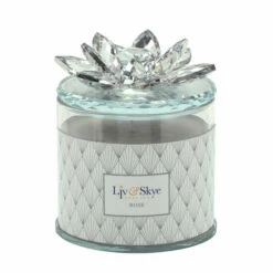 Gorgeous crystal soy candle lotus box. This candle is scented and it will add charm to any room. Place this candle on your coffee table or console table to add a bit of style.Sagebrook Home has been formed from a love of design, a commitment to service and a dedication to quality. They create and import fashion forward items in the most popular design styles. Backed with years of experience in the textile field, They are now providing a complete Home decor story. the combination of wall decor, furniture, lighting and Home accessories are all coordinated with textiles to provide a complete Home look. Sagebrook Home is committed to providing the best Home dΓ©cor and accent pieces at value prices. Item Dimensions:4x4x5/Color: Silver Materials: Glass, Soy Category: Candles, Indoor Product Theme / Style / Trend: Contemporary Country Of Manfacture: Cn