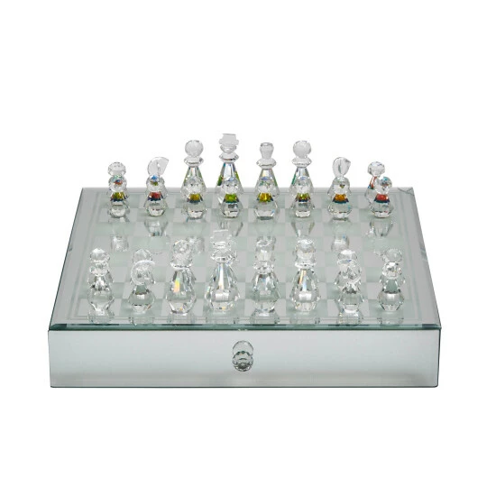 Durable enough to play, yet elegant enough to display in your home. This beautiful chess and check set comes with a glass board and alternating frosted clear squares. Chess pieces are crafted from clear crystal. Chess pieces will show different colors at different angles due to light refraction.Sagebrook Home has been formed from a love of design, a commitment to service and a dedication to quality. They create and import fashion forward items in the most popular design styles. Backed with years of experience in the textile field, They are now providing a complete Home decor story. the combination of wall decor, furniture, lighting and Home accessories are all coordinated with textiles to provide a complete Home look. Sagebrook Home is committed to providing the best Home décor and accent pieces at value prices. Item Dimensions:14x14x3/Color: Silver Materials: Glass, Mdf Category: Decorative Accessories, Decorative Objects Product Theme / Style / Trend: Glam Country Of Manfacture: Cn