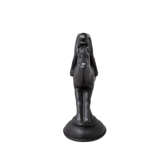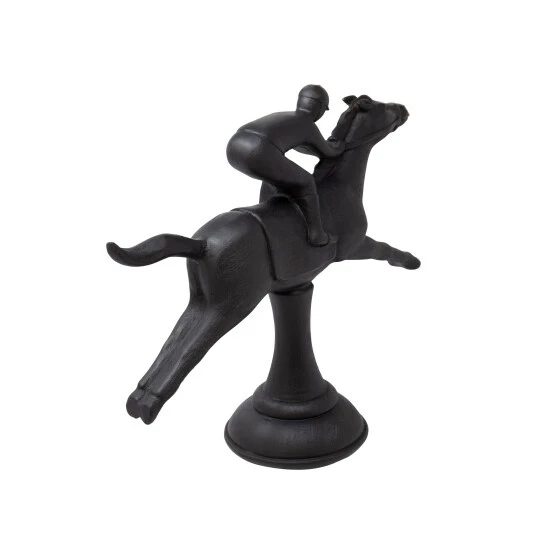 This statue is with a special design, it would be a great addition to your garden. A beautiful sculpture of a jockey on a horseback. This gorgeous piece is perfect for a home with transitional or even transitional style.Sagebrook Home has been formed from a love of design, a commitment to service and a dedication to quality. They create and import fashion forward items in the most popular design styles. Backed with years of experience in the textile field, They are now providing a complete Home decor story. the combination of wall decor, furniture, lighting and Home accessories are all coordinated with textiles to provide a complete Home look. Sagebrook Home is committed to providing the best Home dรฉcor and accent pieces at value prices. Item Dimensions:10.75x4x9.75/Color: Black Materials: Polyresin Category: Decorative Accessories, Figurines Product Theme / Style / Trend: Contemporary Country Of Manfacture: Cn