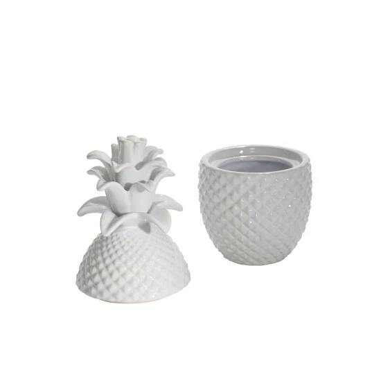 Sagebrook Home Ec, White Pineapple Jar 8.75″, the perfect home decor accessory to accent any corner, entryway or table in your living room, bedroom, and office. This Ceramic Figurines will be the perfect addition to your home decor and complement any of your existing furniture. Created from the highest quality Ceramic, these Figurines home accent will be a great centerpiece for your home! Sagebrook Home has been formed from a love of design, a commitment to service and a dedication to quality. They create and import fashion forward items in the most popular design styles. Backed with years of experience in the textile field, They are now providing a complete Home decor story. the combination of wall decor, furniture, lighting and Home accessories are all coordinated with textiles to provide a complete Home look. Sagebrook Home is committed to providing the best Home dรฉcor and accent pieces at value prices. Item Dimensions:4x4x8.75/Color: White Materials: Ceramic Category: Decorative Accessories, Figurines Product Theme / Style / Trend: Tropical Country Of Manfacture: Cn
