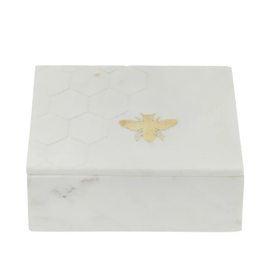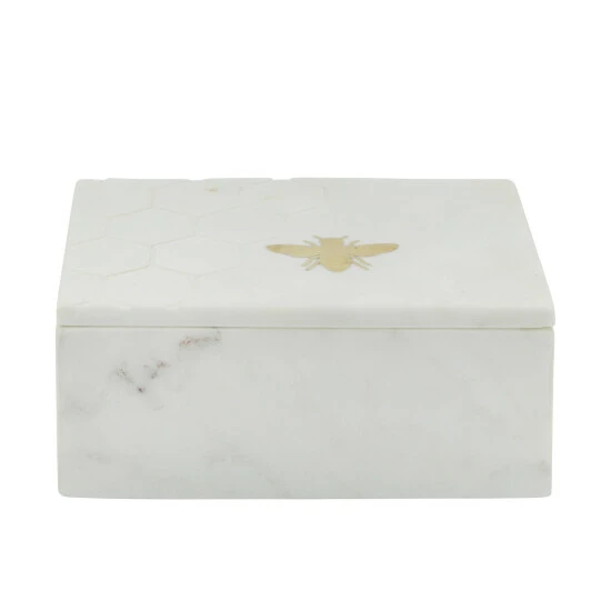 Sagebrook Home Marble 7X5 Marble Box W/ Bee Accent White, the perfect home decor accessory to accent any corner, entryway or table in your living room, bedroom, and office. This Marble Boxes will be the perfect addition to your home decor and complement any of your existing furniture. Created from the highest quality Marble, these Boxes home accent will be a great centerpiece for your home! Sagebrook Home has been formed from a love of design, a commitment to service and a dedication to quality. They create and import fashion forward items in the most popular design styles. Backed with years of experience in the textile field, They are now providing a complete Home decor story. the combination of wall decor, furniture, lighting and Home accessories are all coordinated with textiles to provide a complete Home look. Sagebrook Home is committed to providing the best Home dรฉcor and accent pieces at value prices. Item Dimensions:7x5x3/Color: White Materials: Marble Category: Decorative Accessories, Boxes Product Theme/Style/Trend: Contemporary Country Of Manfacture: In