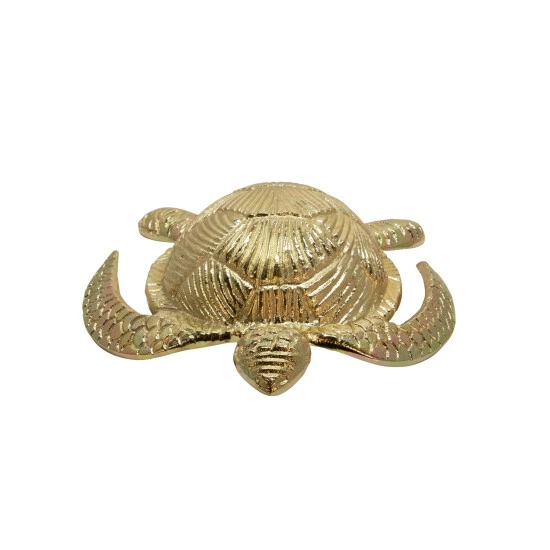 Decorate your home with a touch of nature, endurance and strength. A lovely piece of metallic dΓ©cor for any table top or console. With amazing carving to resemble the turtles skin and shell pattern. Given a gold finish with a gloss top coat for an elegant touch. A perfect additional to any coastal design.