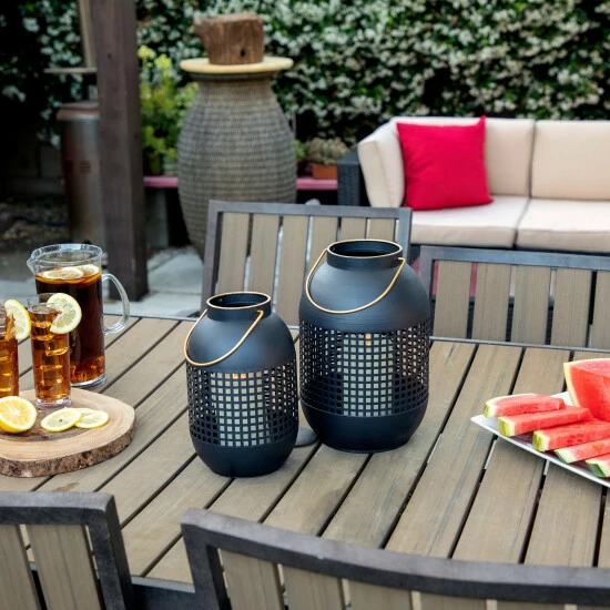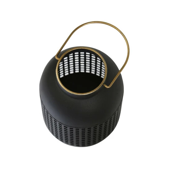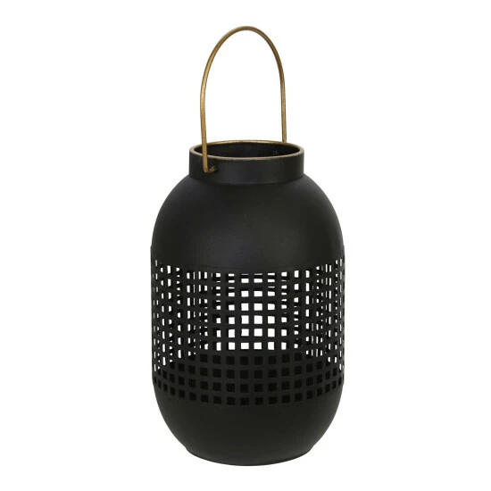 The timeless design effortlessly complements various home decor styles with a lovely style. Crafted from metal, finished in a black hue and gold handle. The lantern is best used hung up or for a table top display. It comes with a glass candle holder so you can neatly light the candle without worrying about any wax drip-age. Item Dimensions:6x6x11/Color: Black Materials: Iron Category: Candles, Candle Holders And Lanterns, Lanterns Product Theme / Style / Trend: Transitional Country Of Manfacture: Cn