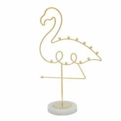 Gold Metal 11″ Flamingo Jewelry Holder with Marble base. This flamingo jewelry rack holder features 11 metal holders. Marble base and metal rack.