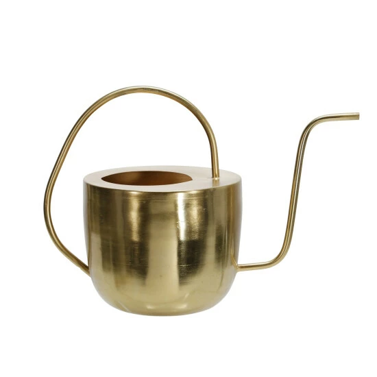 Decorate your abode with this stylish watering can. Featuring a gold metallic finish with a flat top and a curvy handle that is perfectly aligned to the nozzle for a stunning final design. A perfect way to add curves and edges to your home with one item that screams style and glam. Item Dimensions:15x8x11/Color: Gold Materials: Metal, Iron Category: Outdoor Decor, Garden Tools Product Theme / Style / Trend: Glam Country Of Manfacture: In