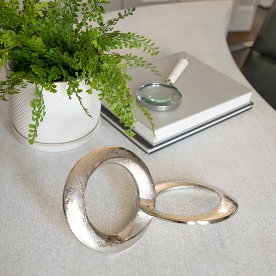 Sometimes less is more, this geometric accent is a perfect example of that motto. Featuring a beautiful metallic finish that will bring glamour and elegance to any room in your home. A simple decor piece that can be used as a paper weight or an enhancing item on any table top display. Item Dimensions:11.5x7x7/Color: Silver Materials: Metal Category: Decorative Accessories, Decorative Objects Product Theme/Style/Trend: Contemporary Country Of Manfacture: In