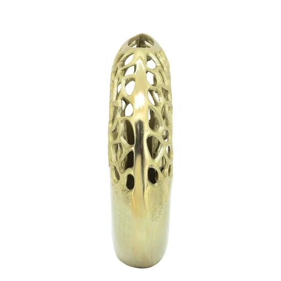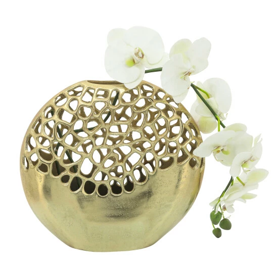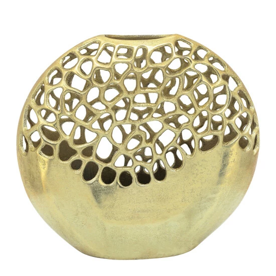 Display your favorite bouquet in our stunning ceramic vase. Made to impress with its beautiful cut-out pattern and shape, it will surely be a unique addition to any home that adores modern decor!Sagebrook Home has been formed from a love of design, a commitment to service and a dedication to quality. They create and import fashion forward items in the most popular design styles. Backed with years of experience in the textile field, They are now providing a complete Home decor story. the combination of wall decor, furniture, lighting and Home accessories are all coordinated with textiles to provide a complete Home look. Sagebrook Home is committed to providing the best Home dΓ©cor and accent pieces at value prices. Item Dimensions:14x4x13/Color: Gold Materials: Aluminum Category: Vases And Jars, Vases Product Theme / Style / Trend: Contemporary Country Of Manfacture: In