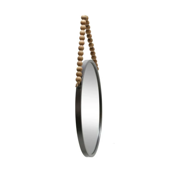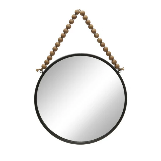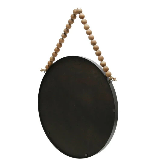 Infuse your home with bold decor elements and vintage style with this striking round mirror. The black finish and beaded hanging accent of the mirror enhances the design complementing any wall color. Crafted from, Iron, Glass, and Wood. Hang this accent mirror on any wall of your home or hotel, restaurant, bar or bathrooms. Item Dimensions:20x1x20/Color: Black Materials: Metal, Glass, Mdf, Wood, Iron Category: Wall Decor, Mirrors Product Theme / Style / Trend: Transitional Country Of Manfacture: Cn