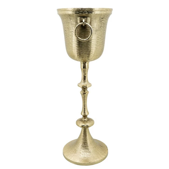 An elegant wine cooler for all of the wine lovers out there. Featuring a pedestal style body with a glossy finish and a wide holder to be able to hold your favorite wine. Space to fill with ice for a cool dessert wine, the perfect drink for a relaxing evening.Sagebrook Home has been formed from a love of design, a commitment to service and a dedication to quality. They create and import fashion forward items in the most popular design styles. Backed with years of experience in the textile field, They are now providing a complete Home decor story. the combination of wall decor, furniture, lighting and Home accessories are all coordinated with textiles to provide a complete Home look. Sagebrook Home is committed to providing the best Home dΓ©cor and accent pieces at value prices. Item Dimensions:12x11x31/Color: Gold Materials: Aluminum Category: Decorative Accessories, Storage Product Theme/Style/Trend: Contemporary Country Of Manfacture: In