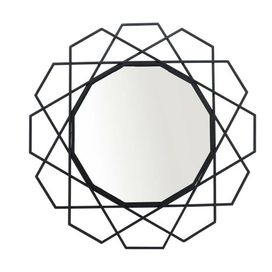 Brighten your rooms by reflecting light and adding color to your walls. Crafted from metal, its frame features raised geometric overlay of a star for a dash of dimension. This mirror will give you a glimpse of your reflection, and bouncing light throughout your room for a brighter feel.Sagebrook Home has been formed from a love of design, a commitment to service and a dedication to quality. They create and import fashion forward items in the most popular design styles. Backed with years of experience in the textile field, They are now providing a complete Home decor story. the combination of wall decor, furniture, lighting and Home accessories are all coordinated with textiles to provide a complete Home look. Sagebrook Home is committed to providing the best Home dΓ©cor and accent pieces at value prices. Item Dimensions:36x2x35/Color: Black Materials: Iron, Glass Category: Wall Decor, Mirrors Product Theme / Style / Trend: Contemporary Country Of Manfacture: Cn