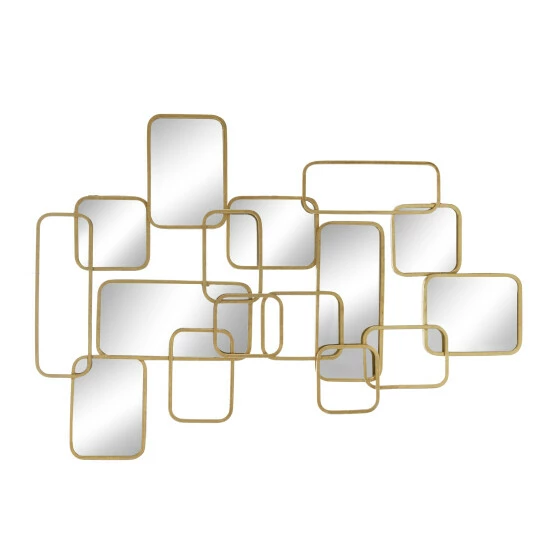 Create a stunning focal point in your home with the Abstract Mirror Wall Decor. The simple yet gallant design is crafted from metal and glass, a lovely addition to any space. he unique multi-squared design creates a modern theme for a room, while the brass finish combined with the mirrored detail gives this piece timeless character. Item Dimensions:27x2x39/Color: Gold Materials: Iron Category: Wall Decor, Metal Wall Product Theme / Style / Trend: Glam Country Of Manfacture: Cn