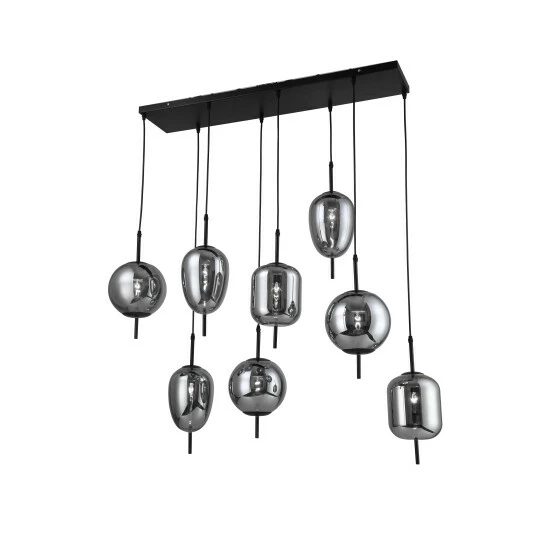 A hanging pendant lamp with 8 light sockets. This lamp has glass shades with a smoke color. This pendant lamp has a total height of 47″Sagebrook Home has been formed from a love of design, a commitment to service and a dedication to quality. They create and import fashion forward items in the most popular design styles. Backed with years of experience in the textile field, They are now providing a complete Home decor story. the combination of wall decor, furniture, lighting and Home accessories are all coordinated with textiles to provide a complete Home look. Sagebrook Home is committed to providing the best Home dΓ©cor and accent pieces at value prices. Item Dimensions:37.007874x8x47/Color: Black Materials: Glass, Iron Category: Lighting, Floor Lamps Product Theme/Style/Trend: Contemporary Country Of Manfacture: Cn, Shade Dimension: 7X7X9.65 Inches, Shade Color: Smoke, Number Of Sockets: 8, Switch Type: Rotary Socket, Bulb Type: E26, Bulb Included: Yes, Maximum Wattage: 25, Cord Length(In): 72, Cord Color: Black