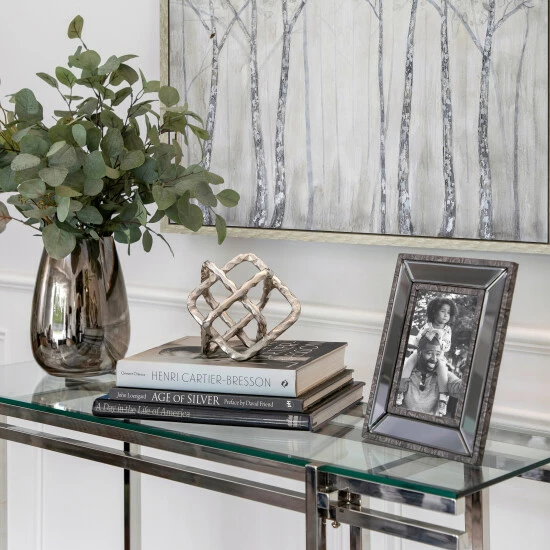 Sometimes less is more, this geometric accent is a perfect example of that motto. Featuring a beautiful metallic finish that will bring glamour and elegance to any room in your home. A simple decor piece that can be used as a paper weight or an enhancing item on any table top display. Item Dimensions:6.5×6.5×7/Color: Silver Materials: Metal Category: Decorative Accessories, Decorative Objects Product Theme/Style/Trend: Contemporary Country Of Manfacture: In