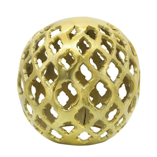 Decorate your entry way console table with this enhancing metal orb. The design features an abstract cut-out pattern that will up do any modern decor by adding a touch of metallic color to your interior for that cool color scheme that you have been looking for!Sagebrook Home has been formed from a love of design, a commitment to service and a dedication to quality. They create and import fashion forward items in the most popular design styles. Backed with years of experience in the textile field, They are now providing a complete Home decor story. the combination of wall decor, furniture, lighting and Home accessories are all coordinated with textiles to provide a complete Home look. Sagebrook Home is committed to providing the best Home dΓ©cor and accent pieces at value prices. Item Dimensions:8x8x8.25/Color: Gold Materials: Aluminum Category: Decorative Accessories, Orbs Product Theme/Style/Trend: Contemporary Country Of Manfacture: In
