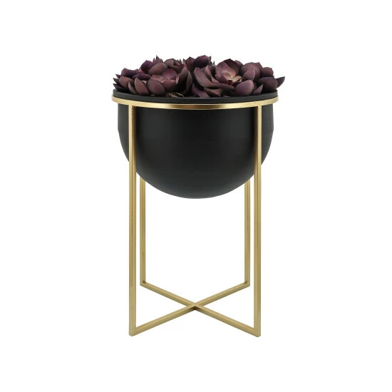 Set of 2 metal planter with a round dome design. It has a non-glossy finish and sits on a tall stand. This beautiful piece will be a great addition to your living room or entry way.Sagebrook Home has been formed from a love of design, a commitment to service and a dedication to quality. They create and import fashion forward items in the most popular design styles. Backed with years of experience in the textile field, They are now providing a complete Home decor story. the combination of wall decor, furniture, lighting and Home accessories are all coordinated with textiles to provide a complete Home look. Sagebrook Home is committed to providing the best Home dΓ©cor and accent pieces at value prices. Item 1 Dimensions: 13x13x19/Item 2 Dimensions: 11x11x15/Color: Black Materials: Metal Category: Outdoor Decor, Planters Product Theme/Style/Trend: Contemporary Country Of Manfacture: Cn