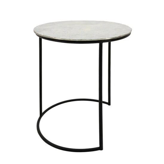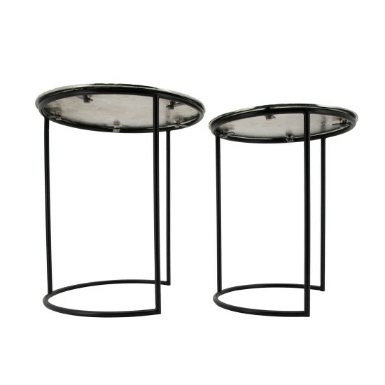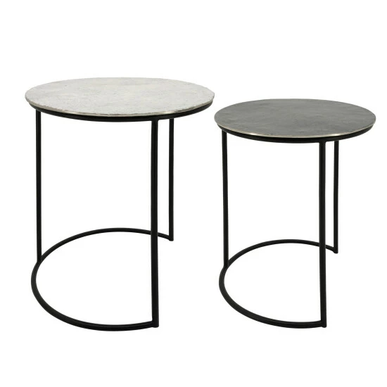 A beautiful contemporary design brings luxury to your tabletop. This set of tables can stand alone and offer a beauty all of its own or paired nest to your sofa. Slender bases support rounded with a contrasting nail head. The perfect home decor accessory to accent any corner, entryway or table in your living room, bedroom, and office. Sagebrook Home has been formed from a love of design, a commitment to service and a dedication to quality. They create and import fashion forward items in the most popular design styles. Backed with years of experience in the textile field, They are now providing a complete Home decor story. the combination of wall decor, furniture, lighting and Home accessories are all coordinated with textiles to provide a complete Home look. Sagebrook Home is committed to providing the best Home décor and accent pieces at value prices. Item 1 Dimensions: 21x21x24/Item 2 Dimensions: 18x18x22/Color: White Materials: Metal, Iron Category: Furniture, Accent Tables Product Theme/Style/Trend: Transitional Country Of Manfacture: In