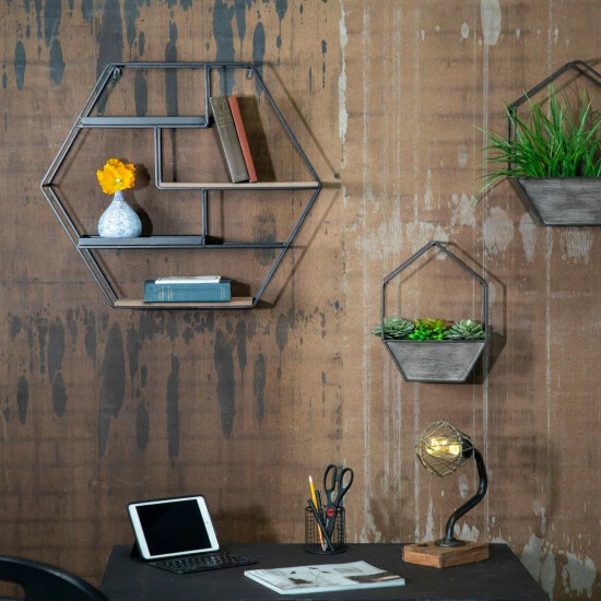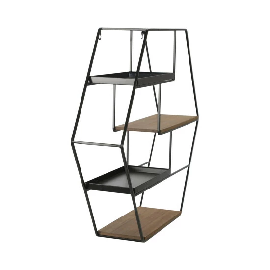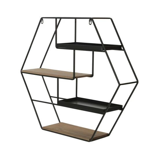 Stunning hexagon with shelves. Each shelf is offset to give a unique design and allow products to be placed with multiple heights. The design will be right at any home. It can hold any of your accessories.Sagebrook Home has been formed from a love of design, a commitment to service and a dedication to quality. They create and import fashion forward items in the most popular design styles. Backed with years of experience in the textile field, They are now providing a complete Home decor story. the combination of wall decor, furniture, lighting and Home accessories are all coordinated with textiles to provide a complete Home look. Sagebrook Home is committed to providing the best Home décor and accent pieces at value prices. Item Dimensions:27×5.9×23.6/Color: Brown Materials: Metal, Mdf, Iron Category: Wall Decor, Wall Storage Product Theme / Style / Trend: Transitional Country Of Manfacture: Cn