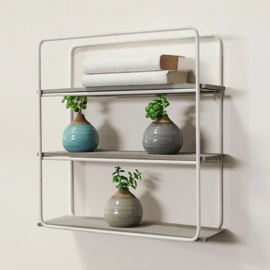 This metal and wood shelf is must for any living space. Imagine it in a bathroom with rolled hand towels or in a bedroom with heartfelt trinkets or in a living room with some prized positions. It’s both stylish and practical.Sagebrook Home has been formed from a love of design, a commitment to service and a dedication to quality. They create and import fashion forward items in the most popular design styles. Backed with years of experience in the textile field, They are now providing a complete Home decor story. the combination of wall decor, furniture, lighting and Home accessories are all coordinated with textiles to provide a complete Home look. Sagebrook Home is committed to providing the best Home dรฉcor and accent pieces at value prices. Item Dimensions:18x6x19/Color: Gray Materials: Iron, Plywood, Iron Category: Wall Decor, Wall Storage Product Theme / Style / Trend: Transitional Country Of Manfacture: Cn