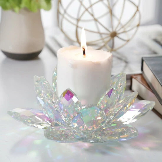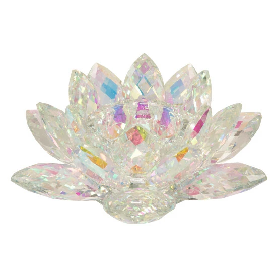 A home with a candle warm glow is the center of relaxation. Add glam to your relaxation with our 8.25″ rainbow crystal candle holder. It has a shape of a lotus votive to resemble nature flowers, and adds 2″ of height to your preferred candle sticks. Beautifully crafted crystal to give a reflective shine off of the candle’s flare. Item Dimensions:8.25×8.25×2.25/Color: Multi Materials: Glass Category: Candles, Candle Holders And Lanterns, Candle Holders And Tealights Product Theme/Style/Trend: Glam Country Of Manfacture: Cn