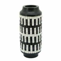 Contemporary vase with a cylindrical design. This vase is crafted from ceramic and it has a tribal design with both matte and glossy finishes . Fill it with fresh or faux flowers to complete your look.Sagebrook Home has been formed from a love of design, a commitment to service and a dedication to quality. They create and import fashion forward items in the most popular design styles. Backed with years of experience in the textile field, They are now providing a complete Home decor story. the combination of wall decor, furniture, lighting and Home accessories are all coordinated with textiles to provide a complete Home look. Sagebrook Home is committed to providing the best Home décor and accent pieces at value prices. Item Dimensions:6x6x14/Color: Black Materials: Polyresin, Mdf Category: Vases And Jars, Vases Product Theme/Style/Trend: Contemporary Country Of Manfacture: In