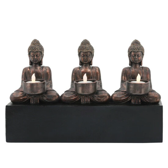Sometimes a peaceful aesthetic is something everyone will appreciate in their home. This stunning resin figurine of 3 mini Buddha’s each holding a small tea light candle. A stunning way to light up the room for an evening of relaxation or meditation.Sagebrook Home has been formed from a love of design, a commitment to service and a dedication to quality. They create and import fashion forward items in the most popular design styles. Backed with years of experience in the textile field, They are now providing a complete Home decor story. the combination of wall decor, furniture, lighting and Home accessories are all coordinated with textiles to provide a complete Home look. Sagebrook Home is committed to providing the best Home décor and accent pieces at value prices. Item Dimensions:15.8×4.3×10/Color: Gold Materials: Polyresin Category: Candles, Candle Holders And Lanterns, Candle Holders And Tealights Product Theme/Style/Trend: Contemporary Country Of Manfacture: Cn