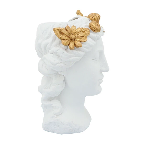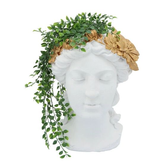 Bring elegance to your home to enhance your ensemble. This lady bust planter will bring an artistic pop to your home with a gold flower crown and impressive exterior detail. Made of resin for long term durability.Sagebrook Home has been formed from a love of design, a commitment to service and a dedication to quality. They create and import fashion forward items in the most popular design styles. Backed with years of experience in the textile field, They are now providing a complete Home decor story. the combination of wall decor, furniture, lighting and Home accessories are all coordinated with textiles to provide a complete Home look. Sagebrook Home is committed to providing the best Home dΓ©cor and accent pieces at value prices. Item Dimensions:12x11x16/Color: White/gold Materials: Polyresin Category: Outdoor Decor, Planters Product Theme/Style/Trend: Contemporary Country Of Manfacture: Cn