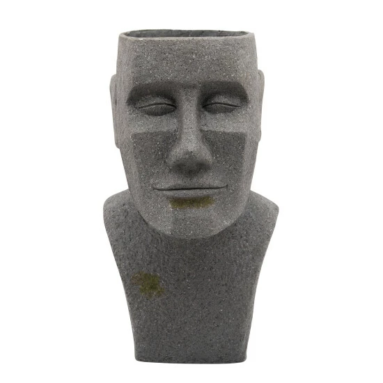 Add a tribal touch to your living room or garden with this moai head bust planter. The exterior has fine etched detailed with a distressed finish.Sagebrook Home has been formed from a love of design, a commitment to service and a dedication to quality. They create and import fashion forward items in the most popular design styles. Backed with years of experience in the textile field, They are now providing a complete Home decor story. the combination of wall decor, furniture, lighting and Home accessories are all coordinated with textiles to provide a complete Home look. Sagebrook Home is committed to providing the best Home dรฉcor and accent pieces at value prices. Item Dimensions:10.63×11.42×19.88/Color: Gray Materials: Polyresin Category: Outdoor Decor, Planters Product Theme/Style/Trend: Contemporary Country Of Manfacture: Cn