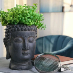 This Buddha face statue brings serenity to any space. This beautiful Buddha statue has a washed finish for added charm. The Buddha is featured resin with a black finish. Bring balance and harmony with this stunning Buddha that doubles as a statue and a planter.Sagebrook Home has been formed from a love of design, a commitment to service and a dedication to quality. They create and import fashion forward items in the most popular design styles. Backed with years of experience in the textile field, They are now providing a complete Home decor story. the combination of wall decor, furniture, lighting and Home accessories are all coordinated with textiles to provide a complete Home look. Sagebrook Home is committed to providing the best Home dรฉcor and accent pieces at value prices. Item Dimensions:8x8x9/Color: Black Materials: Polyresin Category: Outdoor Decor, Planters Product Theme / Style / Trend: Contemporary Country Of Manfacture: Cn