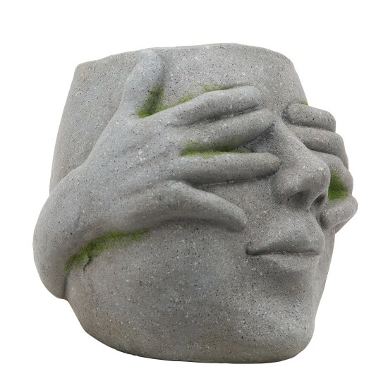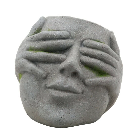 A No See Modern planter with hands covering its eyes. It is crafted from resin and it has a weathered look. Place it in your entryway or outdoor area to bring life to your room.Sagebrook Home has been formed from a love of design, a commitment to service and a dedication to quality. They create and import fashion forward items in the most popular design styles. Backed with years of experience in the textile field, They are now providing a complete Home decor story. the combination of wall decor, furniture, lighting and Home accessories are all coordinated with textiles to provide a complete Home look. Sagebrook Home is committed to providing the best Home décor and accent pieces at value prices. Item Dimensions:9.84×10.24×9.45/Color: Gray Materials: Polyresin Category: Outdoor Decor, Planters Product Theme / Style / Trend: Contemporary Country Of Manfacture: Cn