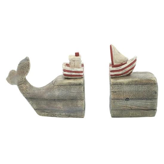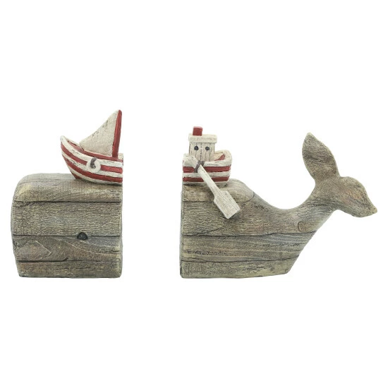 Keep your books organized with style! This set of resin whale bookends feature a natural finish and artistic detail that will not only keep your books in place, but will also enhance any coastal interior design in any room!Sagebrook Home has been formed from a love of design, a commitment to service and a dedication to quality. They create and import fashion forward items in the most popular design styles. Backed with years of experience in the textile field, They are now providing a complete Home decor story. the combination of wall decor, furniture, lighting and Home accessories are all coordinated with textiles to provide a complete Home look. Sagebrook Home is committed to providing the best Home dΓ©cor and accent pieces at value prices. Item Dimensions:12x4x7/Color: Brown Materials: Polyresin Category: Decorative Accessories, Bookends Product Theme/Style/Trend: Contemporary Country Of Manfacture: Cn