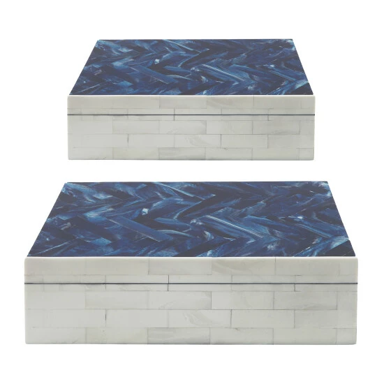 Sagebrook Home Resin S/2 Herringbone Boxes, Navy, the perfect home decor accessory to accent any corner, entryway or table in your living room, bedroom, and office. This Polyresin Boxes will be the perfect addition to your home decor and complement any of your existing furniture. Created from the highest quality Polyresin, these Boxes home accent will be a great centerpiece for your home! Sagebrook Home has been formed from a love of design, a commitment to service and a dedication to quality. They create and import fashion forward items in the most popular design styles. Backed with years of experience in the textile field, They are now providing a complete Home decor story. the combination of wall decor, furniture, lighting and Home accessories are all coordinated with textiles to provide a complete Home look. Sagebrook Home is committed to providing the best Home decor and accent pieces at value prices. Blue Materials: Polyresin, Mdf Category.