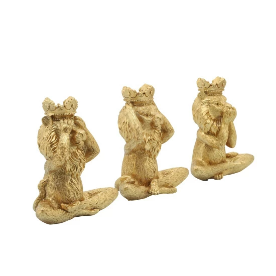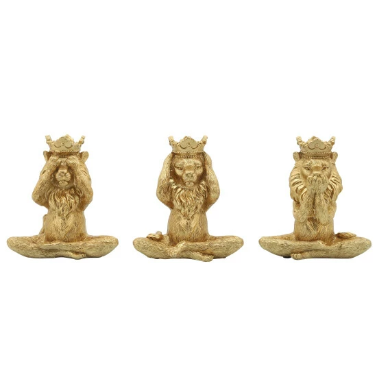 These lions are the perfect addition to any yoga lover’s home! Featuring a set of 3 lions, each demonstrating a part of the hear nothing, see nothing and say nothing motto. A stunning addition to any console table, desk or shelf.Sagebrook Home has been formed from a love of design, a commitment to service and a dedication to quality. They create and import fashion forward items in the most popular design styles. Backed with years of experience in the textile field, They are now providing a complete Home decor story. the combination of wall decor, furniture, lighting and Home accessories are all coordinated with textiles to provide a complete Home look. Sagebrook Home is committed to providing the best Home décor and accent pieces at value prices. Item Dimensions:5x3x6/Color: Gold Materials: Polyresin Category: Decorative Accessories, Figurines Product Theme/Style/Trend: Contemporary Country Of Manfacture: Cn