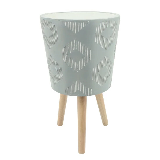 Set of 2 Ceramic planter with diamond design on the exterior. It has a natural finish and the wood legs screw into the bottom of planter. This beautiful piece will be a great addition to your living room or entry way.Sagebrook Home has been formed from a love of design, a commitment to service and a dedication to quality. They create and import fashion forward items in the most popular design styles. Backed with years of experience in the textile field, They are now providing a complete Home decor story. the combination of wall decor, furniture, lighting and Home accessories are all coordinated with textiles to provide a complete Home look. Sagebrook Home is committed to providing the best Home dΓ©cor and accent pieces at value prices. Item 1 Dimensions: 12x12x21/Item 2 Dimensions: 10x10x17/Planter 1 Only Dims:12x12x11/Planter 2 Only Dims:10x10x9/Color: Gray Materials: Polyresin, Beech Wood Category: Outdoor Decor, Planters Product Theme / Style / Trend: Contemporary Country Of Manfacture: Cn