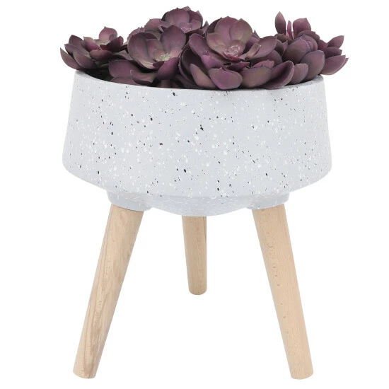 Terrazzo is back and it’s big. Fits well with almost any aesthetic as it’s host to many colors. The natural wood gives a great Hard/Soft feel to these planters.Sagebrook Home has been formed from a love of design, a commitment to service and a dedication to quality. They create and import fashion forward items in the most popular design styles. Backed with years of experience in the textile field, They are now providing a complete Home decor story. the combination of wall decor, furniture, lighting and Home accessories are all coordinated with textiles to provide a complete Home look. Sagebrook Home is committed to providing the best Home dรฉcor and accent pieces at value prices. Item 1 Dimensions: 15x15x10/Item 2 Dimensions: 11x11x8/Color: Gray Materials: Ceramic, Beech Wood Category: Outdoor Decor, Planters Product Theme/Style/Trend: Contemporary Country Of Manfacture: Cn