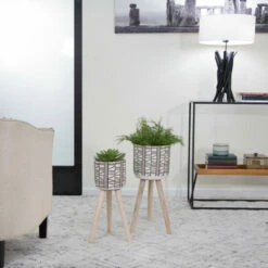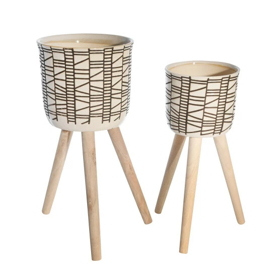 Plants live and artificial or a mix of both brings any interior space closer to nature while contributing to a relaxing atmosphere. Glazed ceramic vessels sit atop of solid wooden legs that ensure the perfect match to your decor, Excellent stylish indoor or outdoor garden.Sagebrook Home has been formed from a love of design, a commitment to service and a dedication to quality. They create and import fashion forward items in the most popular design styles. Backed with years of experience in the textile field, They are now providing a complete Home decor story. the combination of wall decor, furniture, lighting and Home accessories are all coordinated with textiles to provide a complete Home look. Sagebrook Home is committed to providing the best Home dΓ©cor and accent pieces at value prices. Item 1 Dimensions: 10x10x22/Item 2 Dimensions: 8x8x19/Planter 1 Only Dims:10x10x8.5/Planter 2 Only Dims:8x8x7/Color: Ivory/beige Materials: Ceramic, Wood, Cedar Wood Category: Outdoor Decor, Planters Product Theme/Style/Trend: Contemporary Country Of Manfacture: Cn