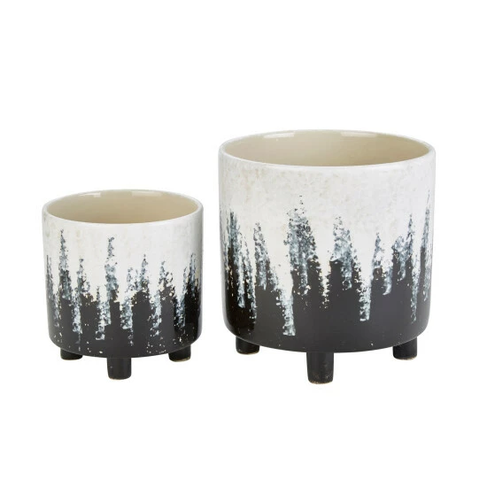 Set of 2 Ceramic Footed Planters in White/Black. One of the planters is 6″ in Height the other is 9″. Beautiful design on both planters, base is black and is accented with white. This set is perfect for indoor our outdoor. Will be a great addition to add to your planter collection. Item 1 Dimensions: 8.50×8.50×8.25/Item 2 Dimensions: 5.75×5.75×6.00/Planter 1 Only Dims:8.50×8.50×7.25/Planter 2 Only Dims:5.75×5.75×5.00/Color: Blue Materials: Ceramic Category: Outdoor Decor, Planters Product Theme/Style/Trend: Contemporary Country Of Manfacture: Cn