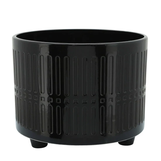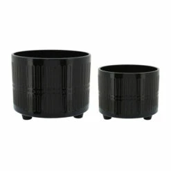 Display your most beloved plants in these beautiful planters. Featuring a geometric outside pattern carved into the material, with feet to give your plant more height. A beautiful set that you and your plants will enjoy!Sagebrook Home has been formed from a love of design, a commitment to service and a dedication to quality. They create and import fashion forward items in the most popular design styles. Backed with years of experience in the textile field, They are now providing a complete Home decor story. the combination of wall decor, furniture, lighting and Home accessories are all coordinated with textiles to provide a complete Home look. Sagebrook Home is committed to providing the best Home dรฉcor and accent pieces at value prices. Item 1 Dimensions: 12.01×12.01×10.31/Item 2 Dimensions: 10.04×10.04×7.99/Color: Black Materials: Ceramic Category: Outdoor Decor, Planters Product Theme/Style/Trend: Contemporary Country Of Manfacture: Cn