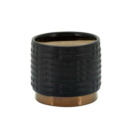 Set Of 2 Maze Metallic Planters 6″/8″, Black. Place These Black Matte, Maze Design, Ceramic Planters In Any Space To Enhance The Room With A Peaceful Environment. These Ceramic Planters Have An Elegant Stylish Black Matte Maze Design On The Planter, The Base Is A Beautiful Gold.Sagebrook Home has been formed from a love of design, a commitment to service and a dedication to quality. They create and import fashion forward items in the most popular design styles. Backed with years of experience in the textile field, They are now providing a complete Home decor story. the combination of wall decor, furniture, lighting and Home accessories are all coordinated with textiles to provide a complete Home look. Sagebrook Home is committed to providing the best Home dรฉcor and accent pieces at value prices. Item 1 Dimensions: 8x8x7/Item 2 Dimensions: 6x6x5/Color: Black Materials: Ceramic Category: Outdoor Decor, Planters Product Theme / Style / Trend: Contemporary Country Of Manfacture: Cn