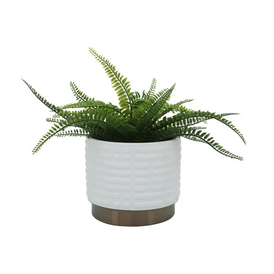 Set Of 2 Maze Metallic Planters 6″/8″, White. Place These White Matte, Maze Design, Ceramic Planters In Any Space To Enhance The Room With A Peaceful Environment. These Ceramic Planters Have An Elegant Stylish White Matte Maze Design On The Planter, The Base Is A Beautiful Gold.Sagebrook Home has been formed from a love of design, a commitment to service and a dedication to quality. They create and import fashion forward items in the most popular design styles. Backed with years of experience in the textile field, They are now providing a complete Home decor story. the combination of wall decor, furniture, lighting and Home accessories are all coordinated with textiles to provide a complete Home look. Sagebrook Home is committed to providing the best Home dรฉcor and accent pieces at value prices. Item 1 Dimensions: 8x8x7/Item 2 Dimensions: 6x6x5/Color: White Materials: Ceramic Category: Outdoor Decor, Planters Product Theme / Style / Trend: Contemporary Country Of Manfacture: Cn
