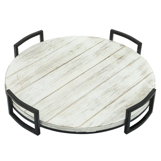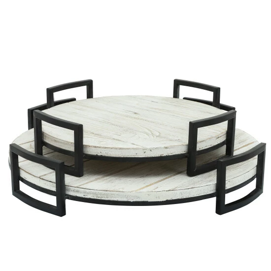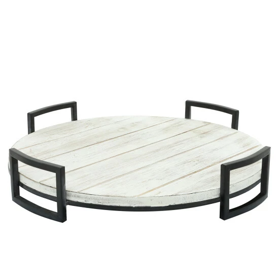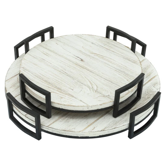 An alluring set of wooden trays. This set of 2 features a distressed gray finish with 4 metal handles for ease of use. These trays are ideal for a refined staging of your favorite decor items. Place them next to each other to compliment its counterpart, or place it on the opposite side of the room to compliment the room as a set. Item 1 Dimensions: 18x18x3/Item 2 Dimensions: 14x14x3/Color: Gray Materials: Wood, Metal Category: Decorative Accessories, Trays Product Theme/Style/Trend: Casual Home Country Of Manfacture: Cn