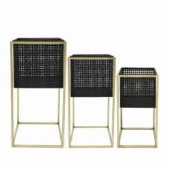 Enhance you home with this stunning set of 3 cubic metal planters. Perfect to display stunning faux plants, made to give your home a contemporary touch, with a glam golden stand that will bring height and elegance to your plants. Perfect for any home with bold style!Sagebrook Home has been formed from a love of design, a commitment to service and a dedication to quality. They create and import fashion forward items in the most popular design styles. Backed with years of experience in the textile field, They are now providing a complete Home decor story. the combination of wall decor, furniture, lighting and Home accessories are all coordinated with textiles to provide a complete Home look. Sagebrook Home is committed to providing the best Home dΓ©cor and accent pieces at value prices. Item 1 Dimensions: 10.75×10.75×21.75/Item 2 Dimensions: 9.5×9.5×18.75/Item 3 Dimensions: 8.25×8.25×5.5/Planter 1 Only Dims:10x10x10/Planter 2 Only Dims:9x9x8/Planter 3 Only Dims:8x8x7/Color: Black Materials: Metal, Iron Category: Outdoor Decor, Planters Product Theme/Style/Trend: Contemporary Country Of Manfacture: Cn