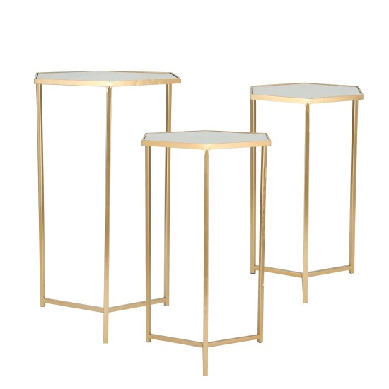 Give your home a little vintage touch with this beautiful piece of decor. A glamming mirror rests on the top of this cylindrical table and reflects the light to make living spaces feel bigger. This set of three is sure to brighten up any room. The perfect home decor accessory to accent any corner, entryway or table in your living room, bedroom, and office. Sagebrook Home has been formed from a love of design, a commitment to service and a dedication to quality. They create and import fashion forward items in the most popular design styles. Backed with years of experience in the textile field, They are now providing a complete Home decor story. the combination of wall decor, furniture, lighting and Home accessories are all coordinated with textiles to provide a complete Home look. Sagebrook Home is committed to providing the best Home dΓ©cor and accent pieces at value prices. Item 1 Dimensions: 18x18x28/Item 2 Dimensions: 16x16x25/Item 3 Dimensions: 14x14x22/Color: Gold Materials: Iron, Glass Category: Furniture, Accent Tables Product Theme/Style/Trend: Glam Country Of Manfacture: Cn