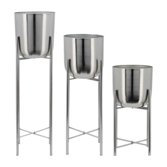 Set Of 3 Metal Planters On Stand, Silver, 40″/30″/20″ H. Metal Planters With Stands Fit In Contemporary-Themed Settings. Lets You Display Your Favorite Plant Or Floral Arrangement With Elegance.Sagebrook Home has been formed from a love of design, a commitment to service and a dedication to quality. They create and import fashion forward items in the most popular design styles. Backed with years of experience in the textile field, They are now providing a complete Home decor story. the combination of wall decor, furniture, lighting and Home accessories are all coordinated with textiles to provide a complete Home look. Sagebrook Home is committed to providing the best Home dรฉcor and accent pieces at value prices. Item 1 Dimensions: 11x11x40/Item 2 Dimensions: 10x10x30/Item 3 Dimensions: 9x9x20/Planter 1 Only Dims:11x11x12/Planter 2 Only Dims:10x10x10/Planter 3 Only Dims:9x9x9/Color: Silver Materials: Iron, Iron Category: Outdoor Decor, Planters Product Theme/Style/Trend: Contemporary Country Of Manfacture: In