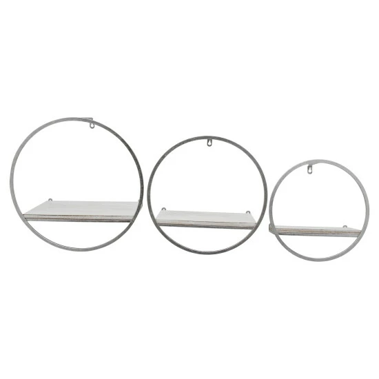 Stunning circular wall shelfs set of three. A great way to display all your favorite candles, succulents, or small accessories, this set of three varies in size from small to large. Each shelf features a wooden base.Sagebrook Home has been formed from a love of design, a commitment to service and a dedication to quality. They create and import fashion forward items in the most popular design styles. Backed with years of experience in the textile field, They are now providing a complete Home decor story. the combination of wall decor, furniture, lighting and Home accessories are all coordinated with textiles to provide a complete Home look. Sagebrook Home is committed to providing the best Home dΓ©cor and accent pieces at value prices. Item 1 Dimensions: 15.75×15.75×8/Item 2 Dimensions: 13.75×13.75×6.25/Item 3 Dimensions: 11.75×11.75×4.25/Color: Silver Materials: Iron, Plywood, Iron Category: Wall Decor, Wall Storage Product Theme / Style / Trend: Casual Home Country Of Manfacture: Cn